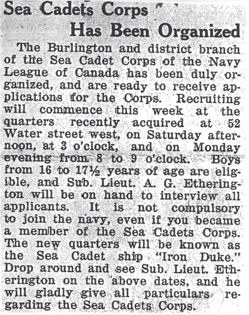 The Burlington, Ontario, Canada Branch of the Navy League of Canada was established in